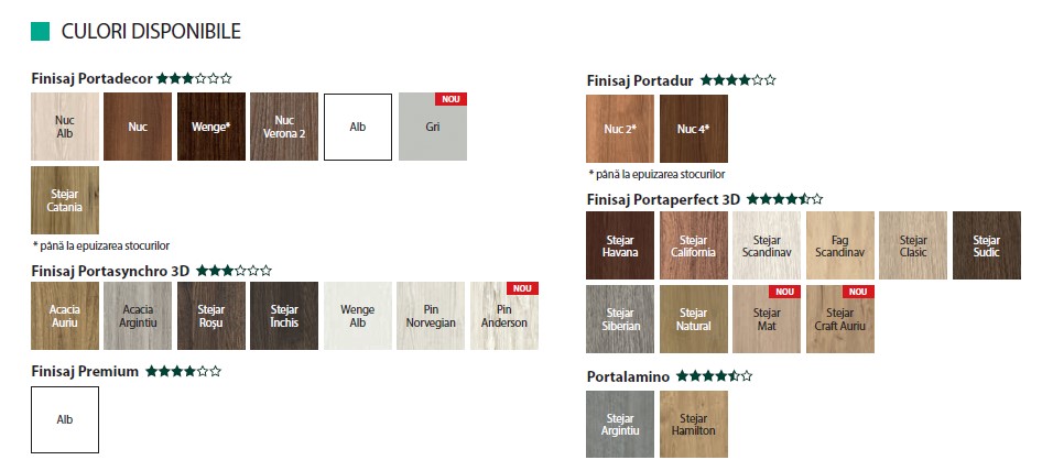 - Posibilitatea de a alege dimensiunea canaturilor pentru ușile duble. Pentru uși duble fără falţ trebuie comandat canatul activ și cel pasiv.