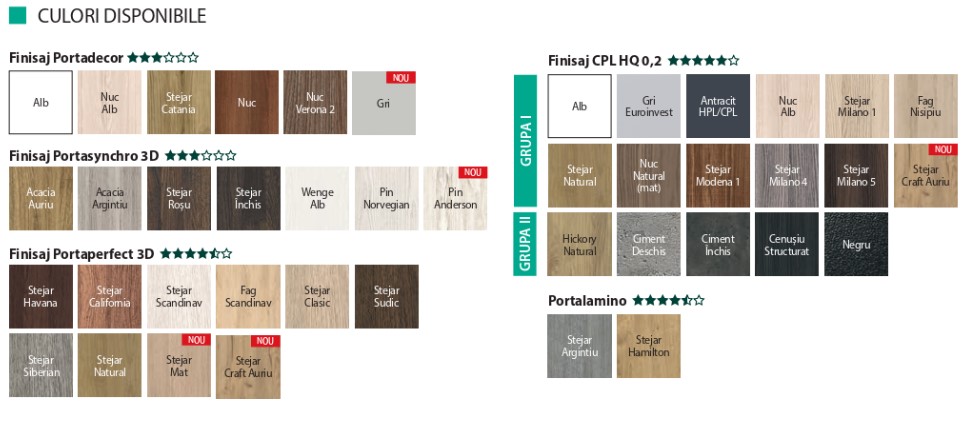 - Posibilitatea de a alege dimensiunea canaturilor pentru ușile duble. Pentru uși duble fără falţ trebuie comandat canatul activ și cel pasiv.