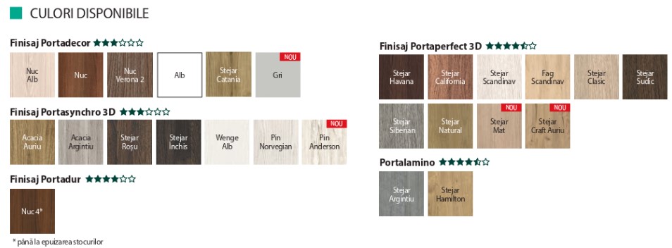 • Posibilitatea de a alege dimensiunea canaturilor pentru ușile duble. Pentru uși duble fără falţ trebuie comandat canatul activ și cel pasiv.