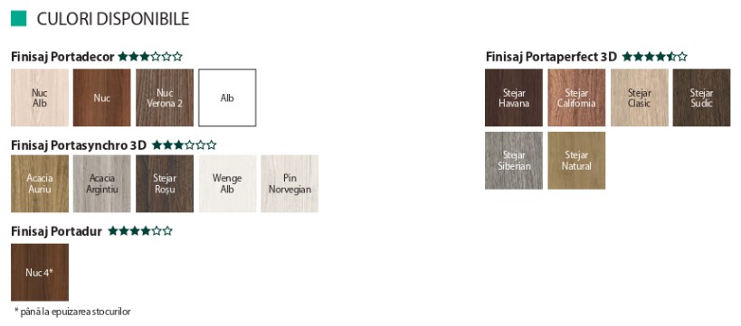 - Posibilitatea de a alege dimensiunea canaturilor pentru ușile duble. Pentru uși duble fără falţ trebuie comandat canatul activ și cel pasiv.