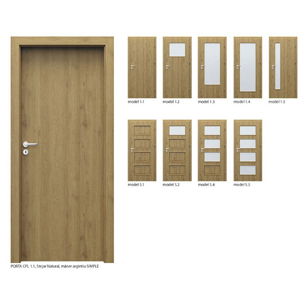 Atât rama canatului cât și panourile sunt executate din MDF. În funcţie de model, canatul este dotat cu sticlă mată călită de 6 mm grosime.